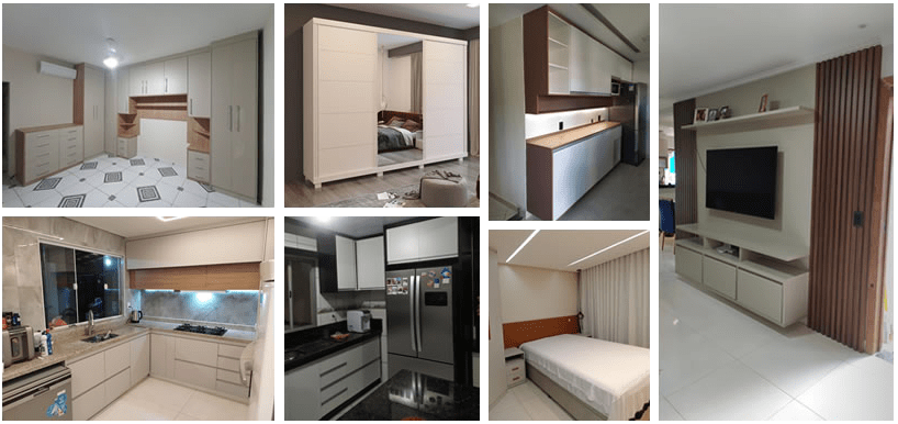 Somos especializados em armários de cozinha, quartos, banheiros, racks, salas e ambientes comerciais. Cada projeto é pensado para se adaptar ao seu espaço e estilo, com atenção aos detalhes e uso de materiais de alta qualidade. Do planejamento à entrega, cuidamos de tudo com responsabilidade.